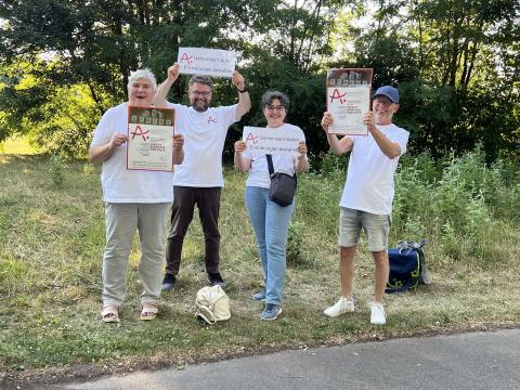 Bei warmen, aber nicht zu heißen Temperaturen (am Vortag hatte es noch knapp 40 Grad), kamen alle Teilnehmenden wohlbehalten und glücklich im Ziel an und wurden auch dort von uns gebührend empfangen. Zum Abschluss fand sich das gesamte Alzheimer-Team dann wieder im Stadion zusammen und freute sich über einen sehr gelungenen Team-Event.